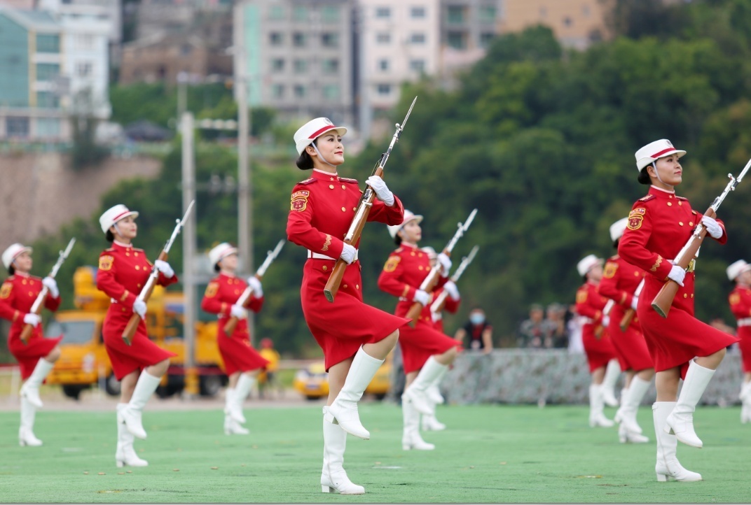 (图为洞头先锋女子民兵连成立之初。资料图片) 今年84岁的汪月霞是地道的洞头渔民,也是洞头先锋女子民兵连的首任连长。上世纪50年代,温州沿海频受骚扰,洞头成了重要的东海海防前线,汪月霞自发组织岛上的渔家姑娘,与战士肩并肩保卫家园。 汪月霞说,那时战士冲锋在前,姑娘们就在后方保障。有次听说在虎头屿孤岛打坑道的部队战士已经断水好几天,她二话不说,带领几个女民兵驾着小船,冒着海上七级大风和暴雨为荒岛上的战士送去淡水。浪大船摇,为了淡水不被打翻,女民兵们硬是靠身体趴在水桶上撑了几个小时。 在那个特殊年代,烧饭送水、护理伤员、站岗放哨,姑娘们可谓样样在行。不仅如此,汪月霞还带领大家学习枪法,参与军事训练。“那个时候大家拼得很咧!林静叶才20出头,身子单薄,打枪被机枪反弹力震到牙龈出血;许玉莲怀有身孕还坚持射击训练……”提到战友,汪月霞像是数如家珍,湿了眼眶。 不仅保家卫国,那时的“海霞”还积极参与地方生产,“1958年,我们10个妇女组建‘十姐妹’班,出海捕墨鱼、捞海蜇、钓螃蟹,搞起了渔业生产,干得红红火火。”汪月霞笑着回忆道,1960年,国防部以毛主席名义授予“海霞”一支56式半自动步枪,汪月霞说,这也成为她们精武打赢的强大动力。 如今,每次连队新兵入列,汪月霞都会来上一堂别开生面的革命传统教育课,为姑娘们讲述队伍的光荣历史。在她眼里,“爱岛尚武 励志奉献”的“海霞精神”就是“海霞”的初心。 技术武装,新时代打磨“海霞之剑” 听着海霞故事长大,土生土长的洞头姑娘陈盈盈也成了一名“海霞”。“奶奶曾是女子民兵连的文艺宣传员,海霞故事从小听到大,‘海霞情’在每一个洞头人的血脉里。”