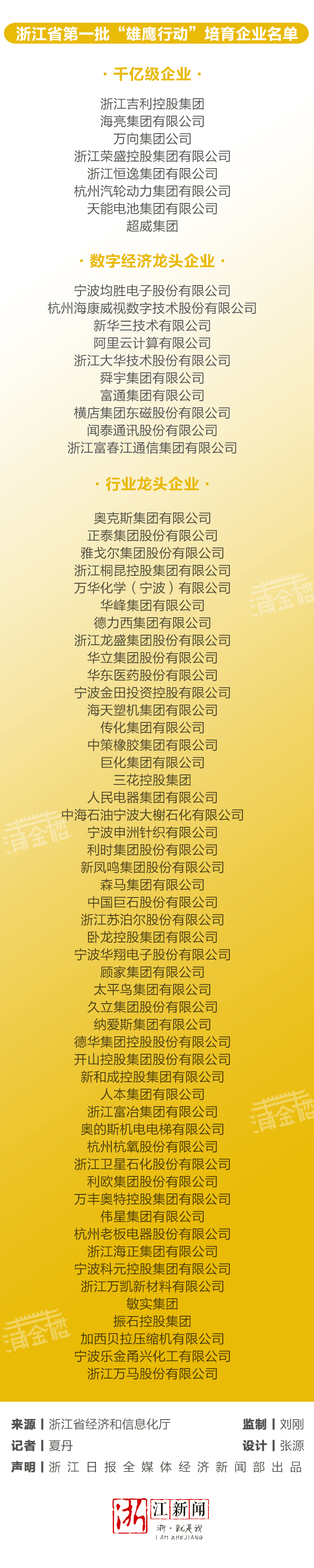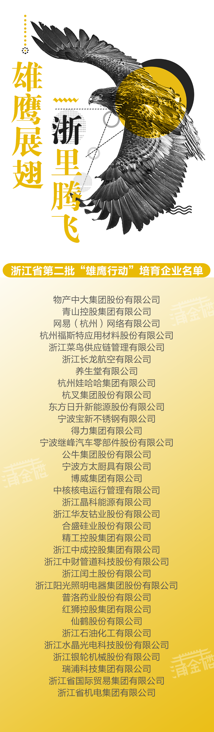 这是继去年首批68家“雄鹰企业”公布后,浙江再度发布“雄鹰企业”培育名单。