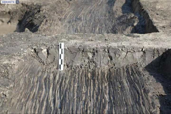 2020年下半年,施岙遗址考古发掘发现了大面积的河姆渡文化早期、晚期与良渚文化时期的古稻田,河姆渡文化晚期与良渚文化时期稻田均有比较清晰的道路系统,尤其良渚文化时期的道路呈“井”字形结构。