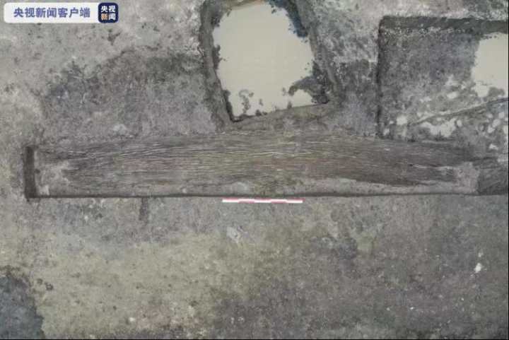 施岙遗址考古发掘时为了解道路延伸情况,考古队对局部道路进行了解剖。2021年1月中旬工地收尾阶段,在其中一条道路东端解剖沟中,除了发现十余根散乱木头外,还发现了一段长约1米的凹弧形木板,沿着弧形木板清理到探沟外,发现其延伸5米多,后将其整体清理出。