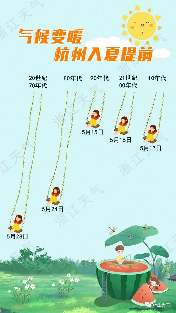 据浙江省气候中心透露,杭州今年的入夏时间较常年(5月20日左右入夏)偏早。