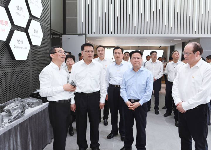 5月25日,省委书记袁家军,省委副书记、省长郑栅洁赴宁波爱柯迪股份有限公司,考察了解数字化助推企业发展情况。浙江新闻客户端 记者 胡元勇 摄