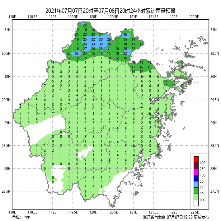受到雨水打压,湖州、嘉兴的气温也会有短暂回落,预计这两地明天的最高气温会回落至30℃左右,这也算是高温天里小确幸了。