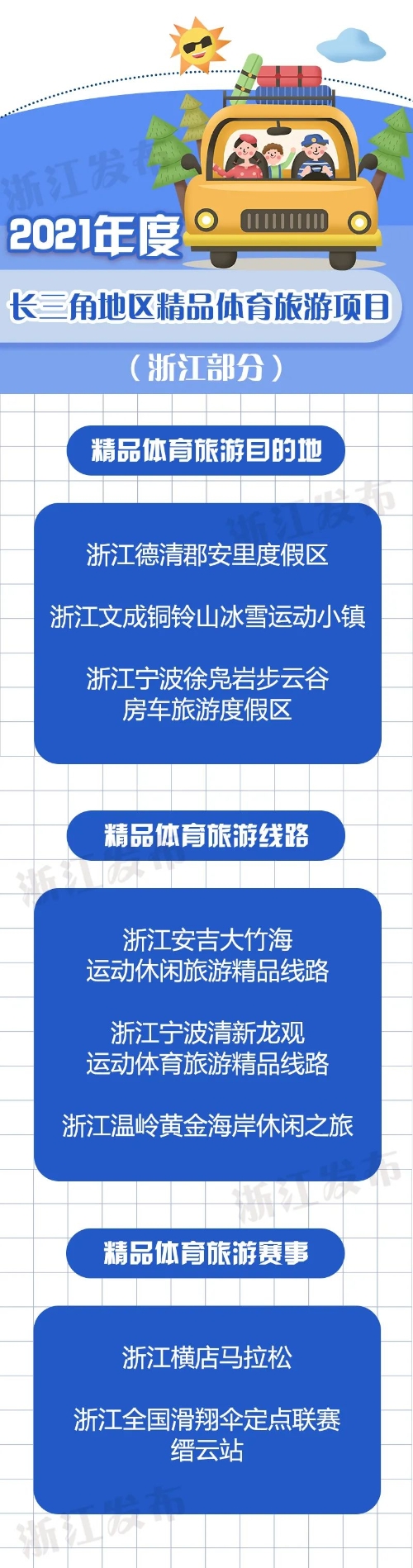 其中,浙江有3个精品体育旅游目的地、3个精品体育旅游线路和2个精品体育旅游赛事入选↓↓