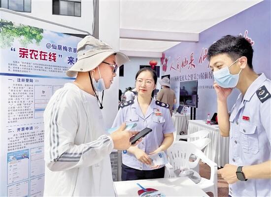 工作人员指导梅农使用“亲农在线”应用。