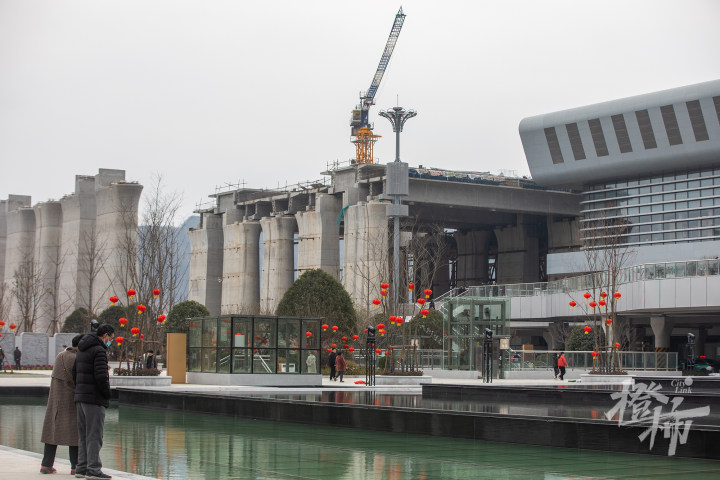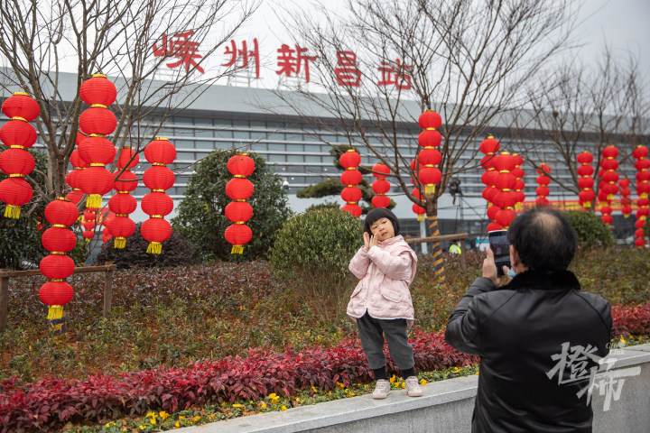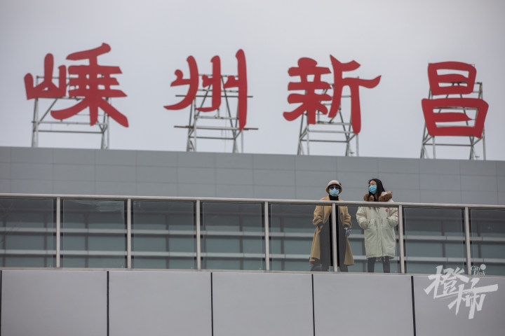 走出地下停车场,崭新的嵊州新昌站矗立在眼前,广场上挂着喜庆的红灯笼和气球。在这里拍照打卡的人很多,大部分都是特地来看高铁站的嵊州和新昌市民。