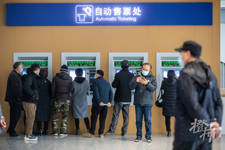 售票大厅里,不少市民在自助售票机前排队查、购票,很多人直接买了近期往返杭州的高铁票,一了从家门口坐火车出行的心愿。