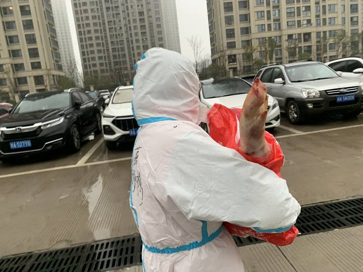给住户抱回几十斤的猪腿