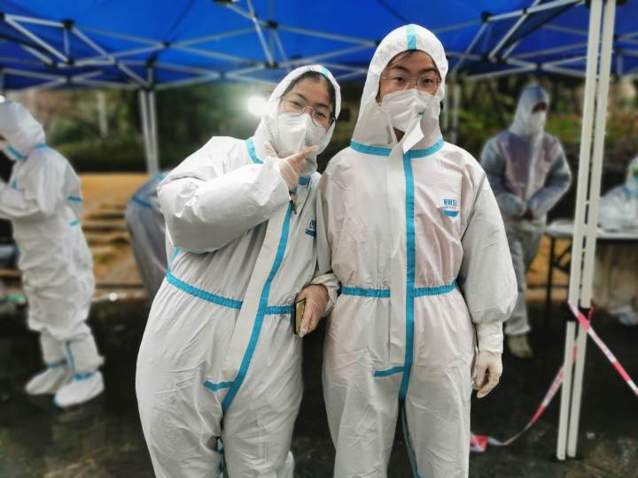 从1月26日起,她们这一对双胞胎在萧山义桥封控管理小区御景蓝湾做志愿者,经历了此生难忘的48小时。