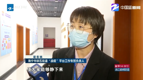 海宁市硖石街道“战疫”平台工作专班负责人 居春晓:从最基层了解群众缺什么,需要什么,我们能做什么。最大限度满足群众需求,使大家静下来,也是为疫情防控作出最大贡献。”