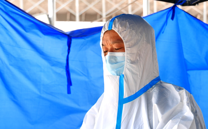 杭州农副产品物流中心接驳司机 金高红:消杀完了之后再等半个小时,我们就领这个防护服上车开走,货卸完了之后就把车子开过来,那边一直在市场里面都是不能下车的。
