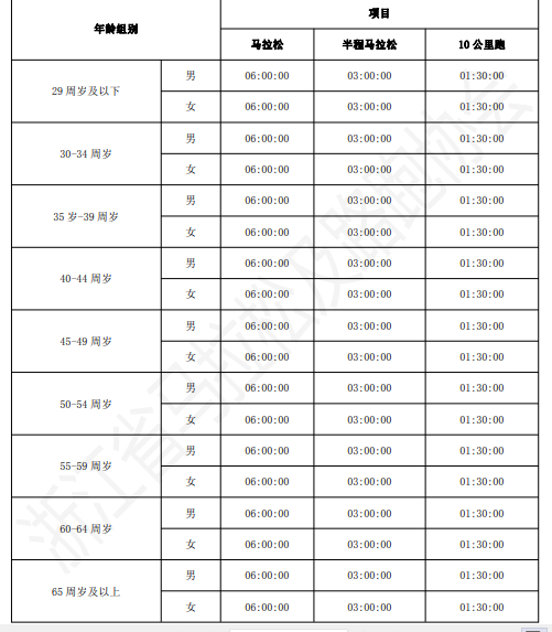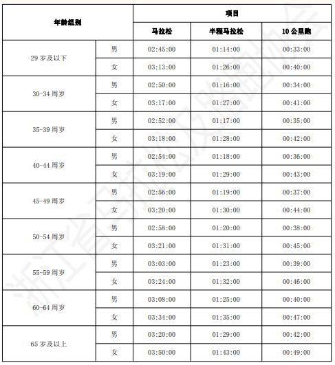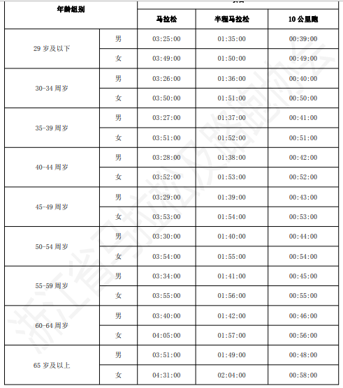 根据团体标准内容,浙江马拉松及路跑运动大众等级划分与评定的项目设置分为:马拉松(42.195公里)、半程马拉松(21.0975公里)和10公里跑。