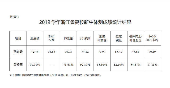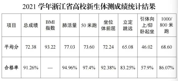 近日,浙江省教育厅办公室发布《关于2021学年高校新生(浙江籍高中毕业生)体质健康测试情况的通报》,引发关注。
