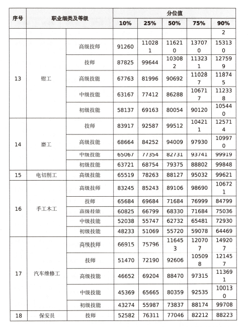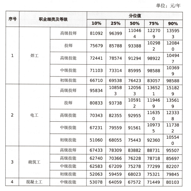 近日,嘉兴市人社部门对全市不同规模、区域和行业的1400家企业,共15万多名职工开展抽样调查,形成2022年嘉兴市人力资源市场工资价位及行业人工成本信息。从职业来看,电工的收入明显高于其他工种。