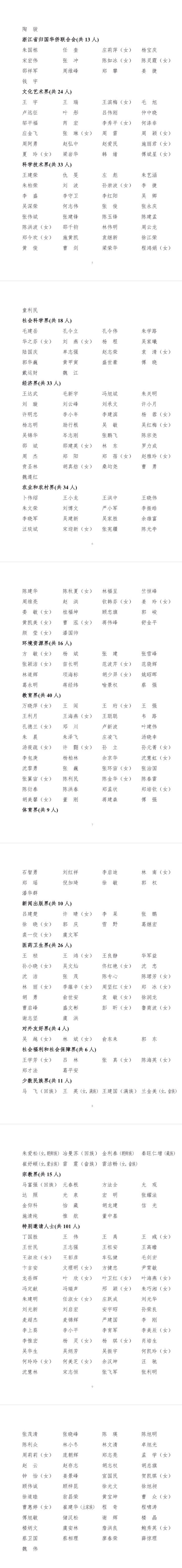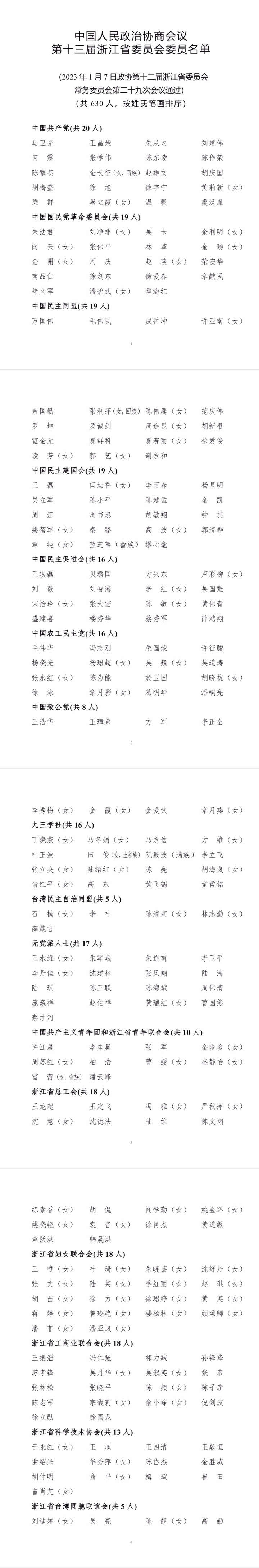 政协第十三届浙江省委员会委员名单发布