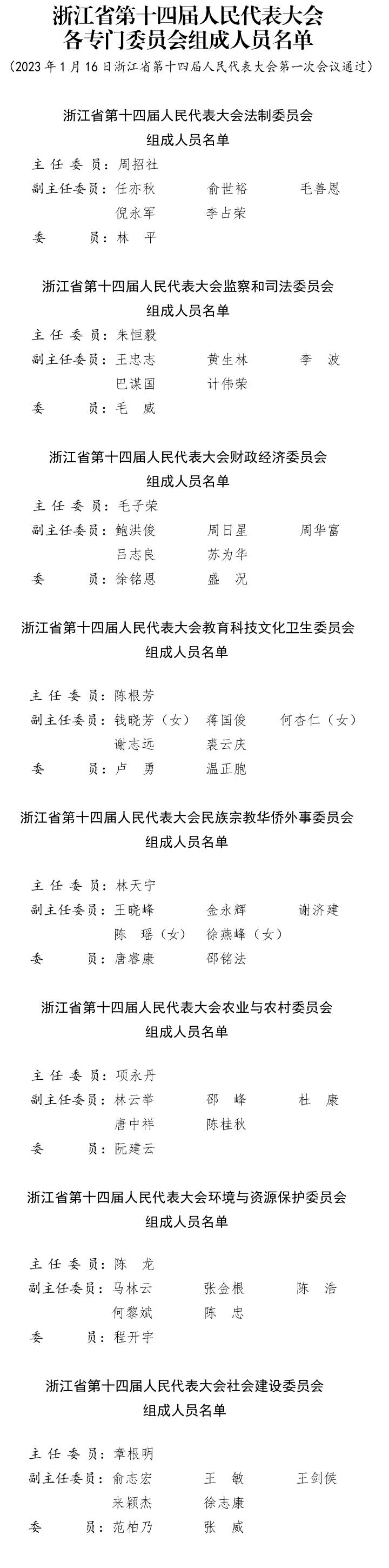 (原标题:浙江省第十四届人大各专门委员会组成人员名单)