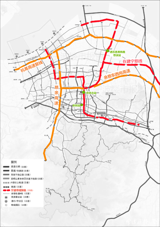 从规划图看,余慈地区联系宁波主城区的市域快轨,除已在建的宁波至慈溪市域(郊)铁路外,还规划了由余姚城区—宁波主城区、余姚城区—慈溪城区—前湾新区、余姚城区—中意宁波生态园等主线、支线组成的市域快轨线。