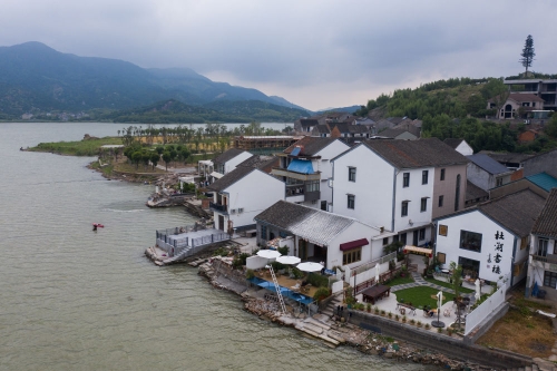 6月12日,空中俯瞰慈溪市匡堰镇倡隆村的楝树下艺术村落,村落总面积约7公顷105亩,总投资1000余万元,邀请中国美院团队进行设计改造(无人机照片)。改造后的“楝树下”艺术村落集聚入驻了云朵咖啡、体验农园、农家乐、楝树下9号民宿、梦想厨房等多种新型业态,每年为村民带来40余万元租金收入,带动沿线农家乐经营户营业额约800万元,两年内累计新增就业岗位300余个。