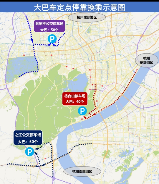 端午期间每日7时至19时,西湖景区道路禁止旅游大巴驶入(不含单位、学校等非旅游性质大客车),在阮家桥公交换乘点、之江公交停车场、将台山停车场实行指定地点停放、上下客,换乘公交进入。