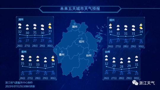 今天,熟悉的热度卷土重来,预计今天最高气温浙北北部和沿海地区33℃-35℃,其它地区35℃-37℃,再加上相对湿度较高,体感较热,需注意防暑防晒。