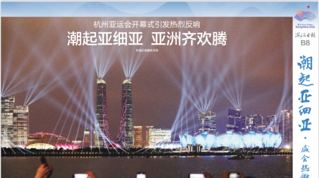 9月23日晚,杭州奥体中心体育场,潮起亚细亚,亚洲齐欢腾。来自亚洲各地的运动健儿、现场观众,亿万电视观众,一起凝视、见证着“万里尚为邻”的中国式浪漫。如梦似幻的开幕式表演,向世界传递“人文、绿色、智能、简约、惠民”的办赛理念。