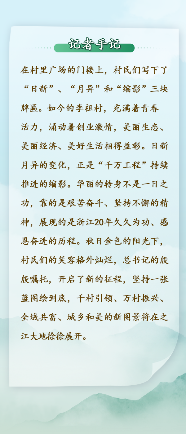 村民方飞玲自豪地表示:“总书记说李祖村是‘千万工程’的缩影,我们很高兴!”