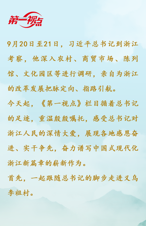 9月20日,习近平总书记来到义乌考察调研,第一站就来到李祖村,回想起总书记和大家在一起的场景,村民们依然心潮澎湃。