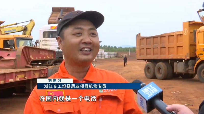 浙江交工坦桑尼亚项目机修专员 刘虎闪:设备停在那里,看着干着急,在国内就是一个电话或者是拍个照片,随时都可以拿得到。在这像一个很小的配件,最快的速度空运半个月到20天。