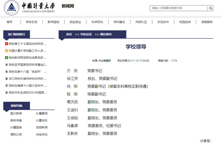 2023年11月任中国计量大学副校长。