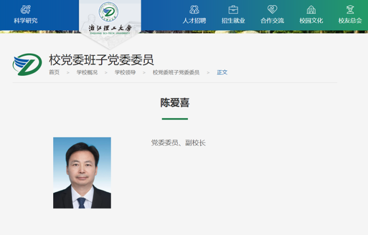 陈爱喜任浙江理工大学副校长;免去郜正荣的浙江理工大学副校长职务