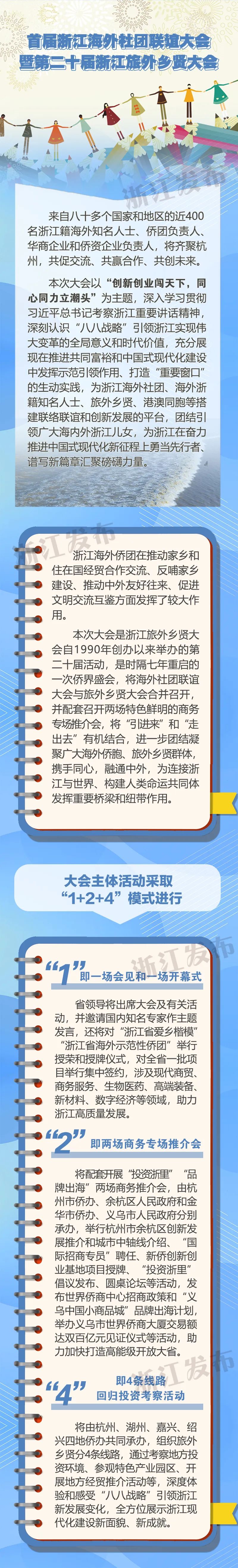 海外侨胞是推动中国经济社会发展、促进科技创新进步的重要力量,海外侨团是联结广大海外侨胞的桥梁纽带和华侨华人社会的重要支柱。由浙江省侨办、浙江省侨联、浙江海联会联合主办的首届浙江海外社团联谊大会暨第二十届浙江旅外乡贤大会,将于11月25日-28日举行。