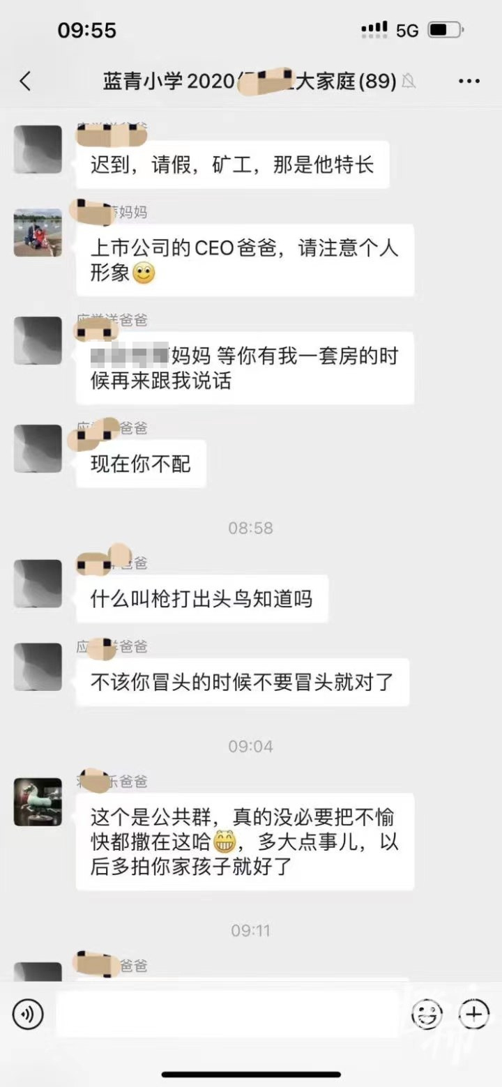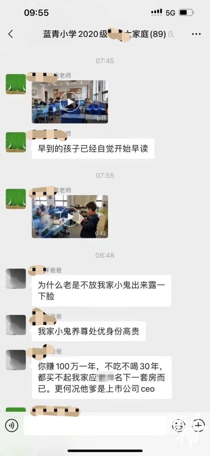 他也怒怼群里提醒他注意个人形象的家长,“等你有我一套房的时候再来跟我说话。”