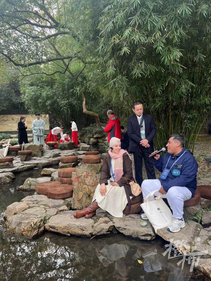 哈萨克斯坦国立师范大学绘画系副教授Nurlan Kilibayev感慨道:中国文化的“曲水流觞”让我感受到了一种珍贵的友谊,不同国家的人坐在这里,虽然彼此语言不通,但在这种氛围下,仿佛又什么都听懂了。“文化和艺术没有国界,都是相通的。”