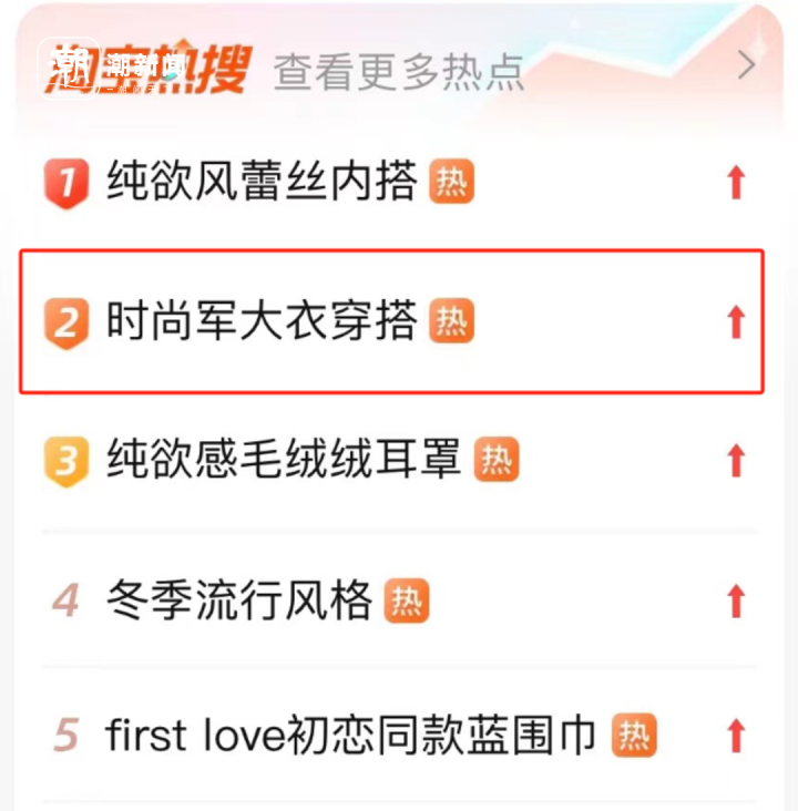 记者随机打开多个购物应用,发现多家网店军大衣的销量都在1万+以上,价格则在40到100元之间不等。其中,“时尚军大衣穿搭”词条的淘宝实时热搜还冲到了第二位。