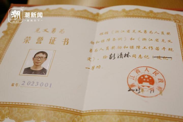 而就在今年的6月25日,彭清林获颁了由杭州市人民政府给予的二等功。“一切都还历历在目,到了快年底了,还有这么高的荣誉要颁给我。”彭清林说,自己相比解放军、公安民警、消防员这些保家卫国的英雄,只不过是做了一件很微不足道的事。