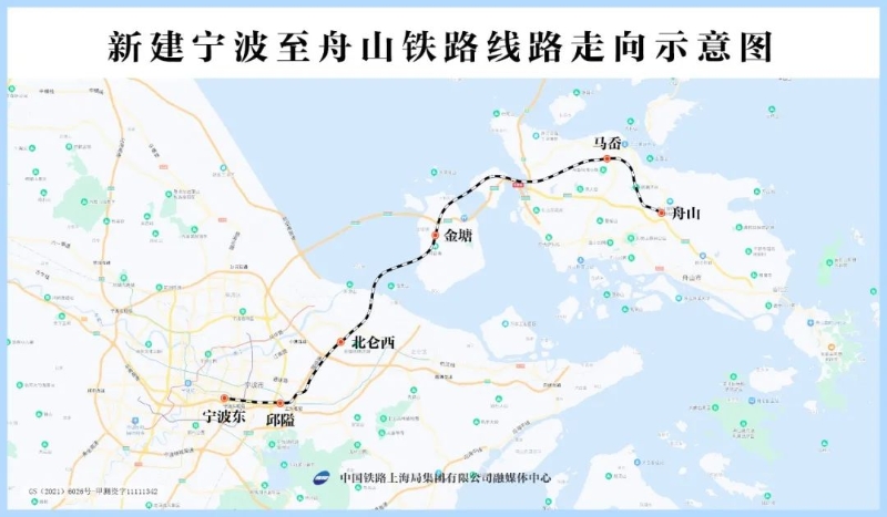 甬舟铁路西起宁波东站,设有宁波东、云龙、邱隘、北仑西、金塘、马岙、舟山7个车站,线路全长约77公里,设计时速250公里,是构建浙江省“1小时交通圈”,形成大陆与舟山岛间便捷的客运通道。