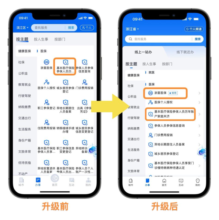 近日,“浙里办”结合用户集中反映意见和日常运营中发现的问题,进行“浙里办”APP、“浙里办”支付宝小程序和“浙里办”微信小程序全新升级。升级后的“浙里办”在APP和小程序的视觉体验、界面布局、办事分类更加整齐划一。