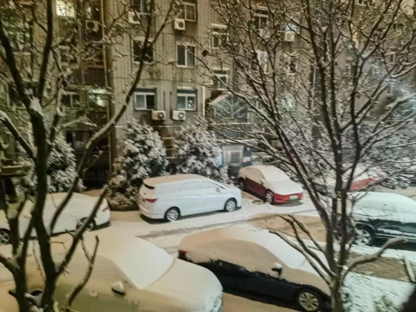 一早,北京的用户孙女士给潮新闻发来了雪景。“我们从杭州搬去北京不久,这是我们在北京经历的第一场雪,下挺大,雪都积起来了。”