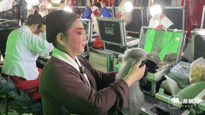 在演出后台化妆的叶国荣。潮新闻记者 朱高祥 摄