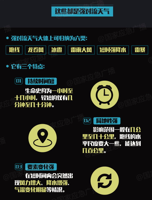 强对流天气是指发生突然、天气剧烈、破坏力极强,常伴有雷雨大风、冰雹、龙卷风、飑线、短时强降雨等的强烈对流性灾害天气,是灾害性天气之一。