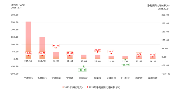 而从目前已经披露2023年年报的浙江上市公司情况来看,除了净利润排名第一的宁波银行,浙商银行以及中国巨石的位置也没有显著变化。