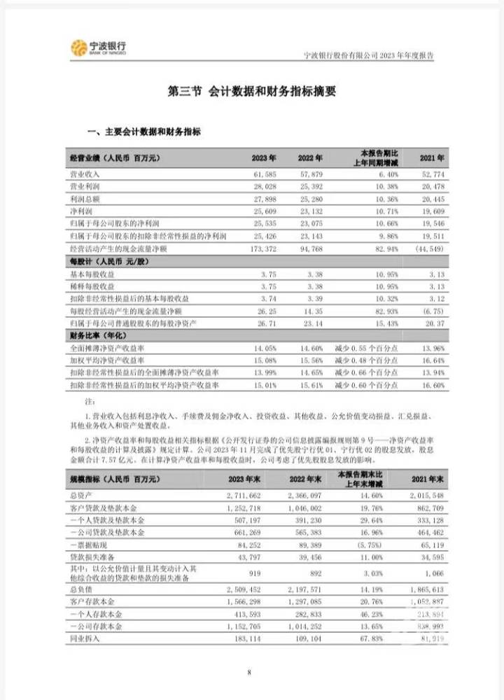 财报显示,2023年,宁波银行净息差为1.88%,同比下降14个基点;在息差收窄的情况下,仍实现利息净收入409.07亿元,同比增长9.02%。