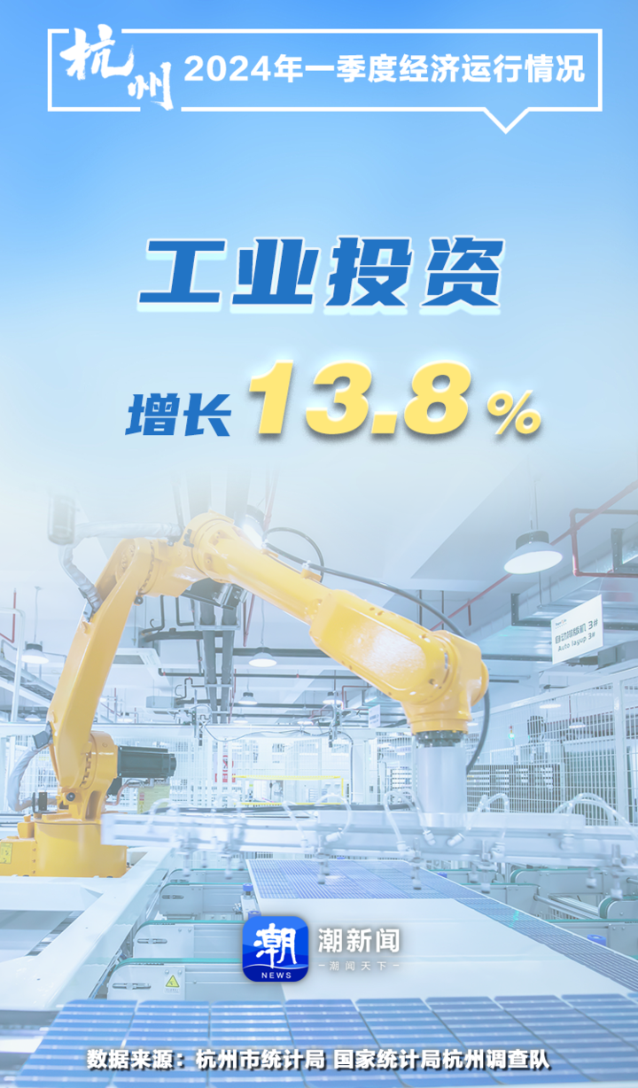 一季度,杭州工业投资增长13.8%,连续13个季度保持两位数高增长。