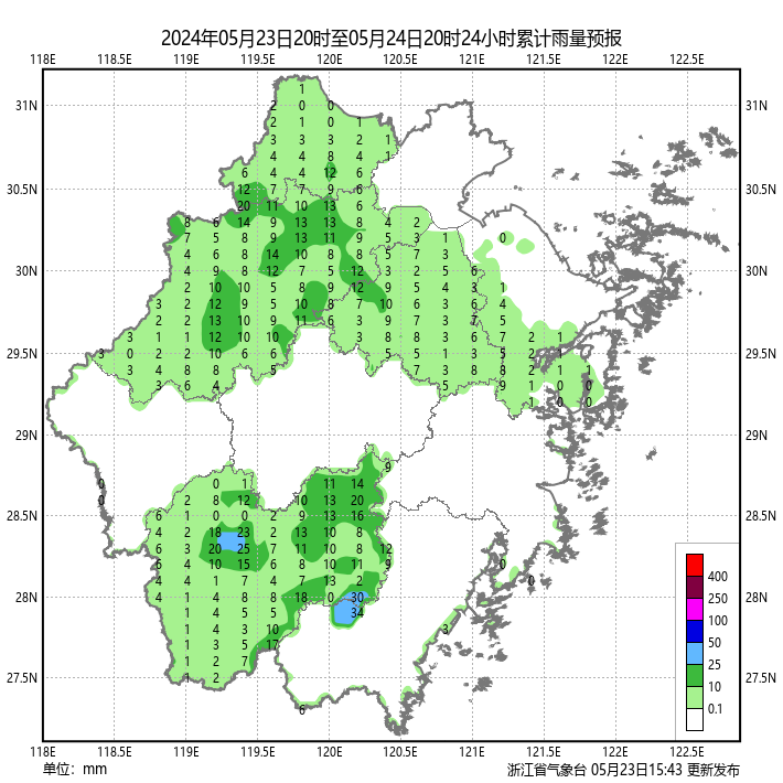 昨天(5月23日),浙江的30℃+又回来了。除沿海地区外,我省大部被“3”字头覆盖,最高气温前三甲:建德(32.5℃)、桐庐(32.4℃)、兰溪(32.1℃)。