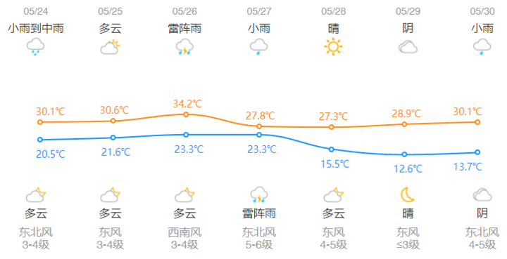 下周一(27日),受高空槽和低涡切变影响,届时全省阴有阵雨或雷雨,部分中到大雨局部暴雨。下周后期(31日到6月1日),我省还有一次降水过程候场,但由于时间较远,天气系统变化较快,仍存在调整的可能性。