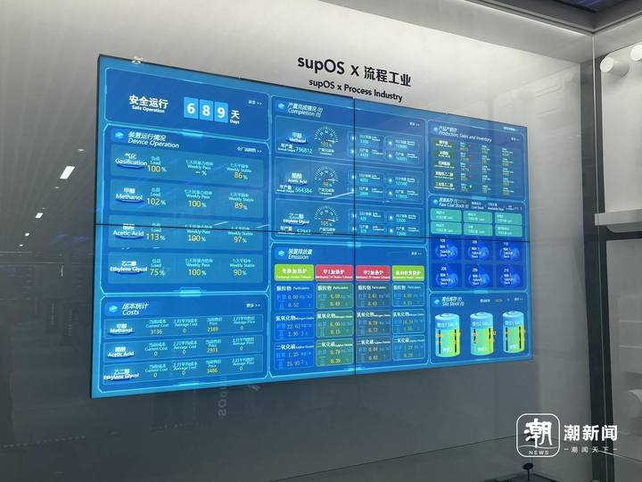 蓝卓工业互联网平台应用创新体验中心展示的supOS流程工业运行情况。潮新闻记者 潘璐 摄