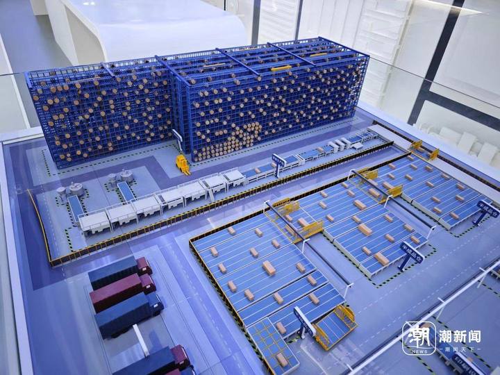 在宁波甬水桥科创中心,杭甬共同编织的工业互联网在这里拔节生长。走进蓝卓工业互联网平台应用创新体验中心,映入眼帘的是展厅里的一例例工业操作系统的生动实践。蓝卓科技工作人员董磊达指着微缩工厂模型向潮新闻记者介绍,模型上有一排排立体货架、自动链板输送机,全自动的智能运转车穿梭其中。