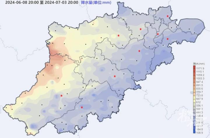 入梅后我省出现南北两段强降雨集中期,呈现西部雨量大、暴雨高度集中、极端性强等特点。