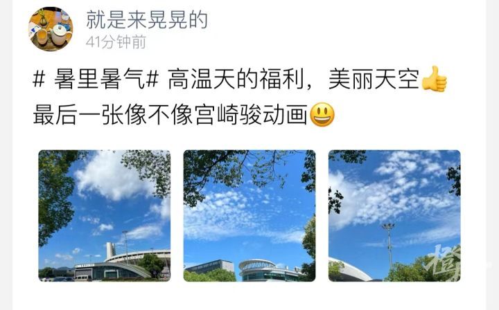 昨天被晚霞刷屏,今天又被久违的蓝天白云刷屏,夏日的天空似乎也在换着方式宣告:明天杭州出梅啦!