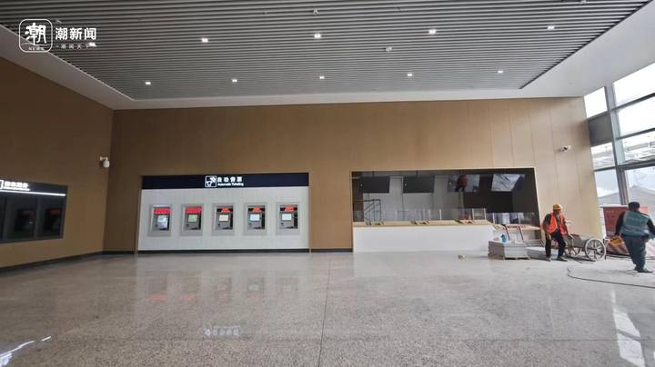 在候车大厅处,还设置有夹层,到时候将引入各类商业店铺,提供餐饮、购物等服务,这些店铺目前正在装修。